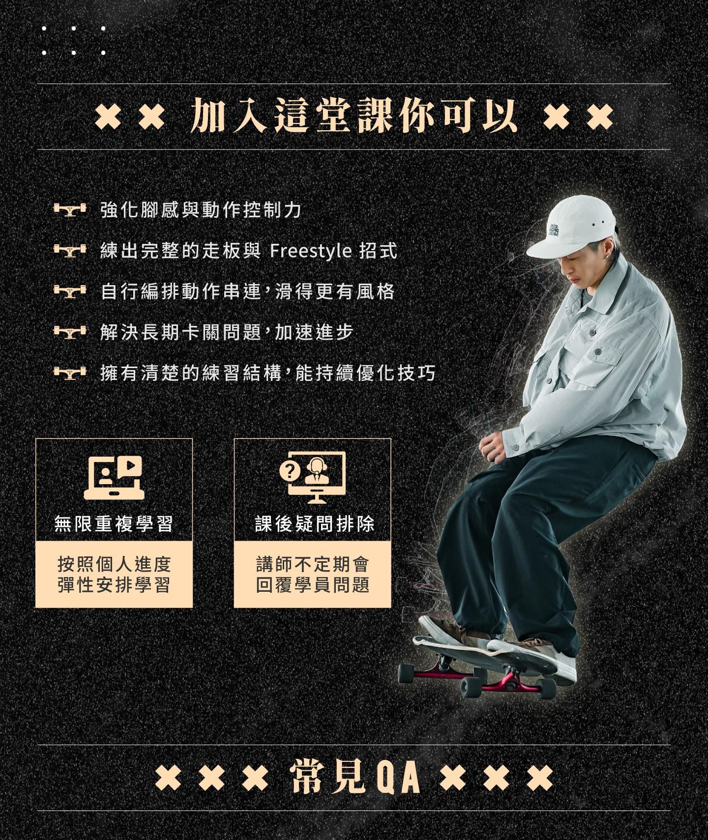 超過五年實際教學經驗,幫助超過 500 位學員成功學會滑行、走板,甚至解鎖招式!